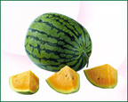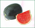 This variety is vigorous, early maturity. Fruit is round with light green and dark green strip about 10kg. Flesh is red and sweet. Brix is about 12%. Rind is tough, good for storage and shipment.